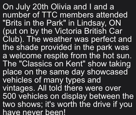 Here’s what the president of TORONTO TRIUMPH CLUB said about our 2025 car show!